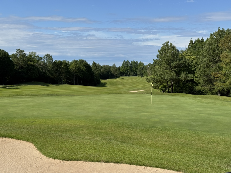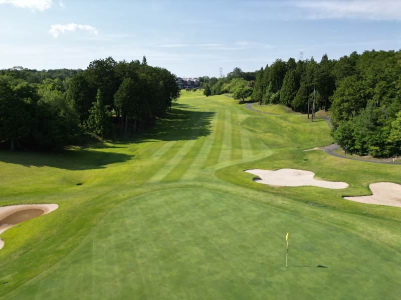 ティーグラウンドはゆったりとスペースをとり、グリーンはベント芝のワングリーン。フェアウェイからグリーンを狙うショットの場合は必ずピンの根元が見えるように設計。ハーフ9ホールの中にシビアなもの、イージーなもの、スタンダードなものを3ホールずつ組み合わせ、バンカーや池を効果的に配した、優美で戦略性に富むコース。