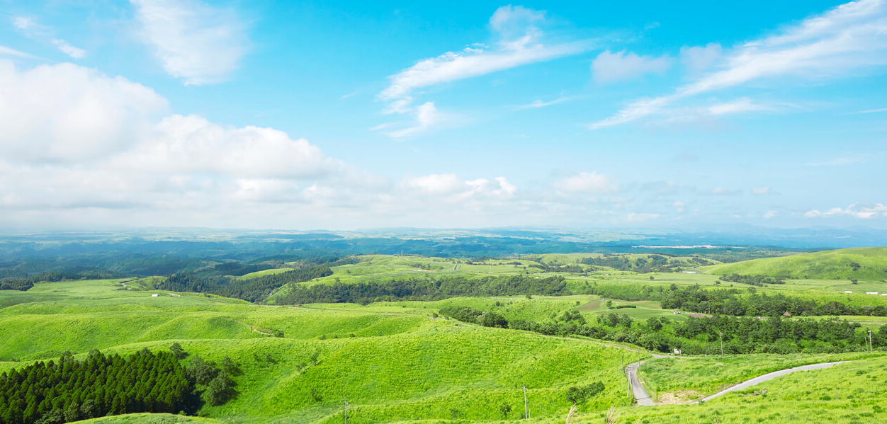 市街地から阿蘇方面へ車を走らせると、火山地形ならではの雄大な起伏と遠景の稜線が現れ、ショットの弾道が空へ吸い込まれていく解放感を味わえます。