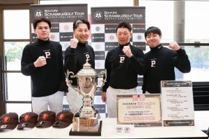 先ほどのホールで桜さんはティーショットのノルマ(7回)をクリア。会社&ゴルファーの先輩としてあるべき姿を見せることができました。