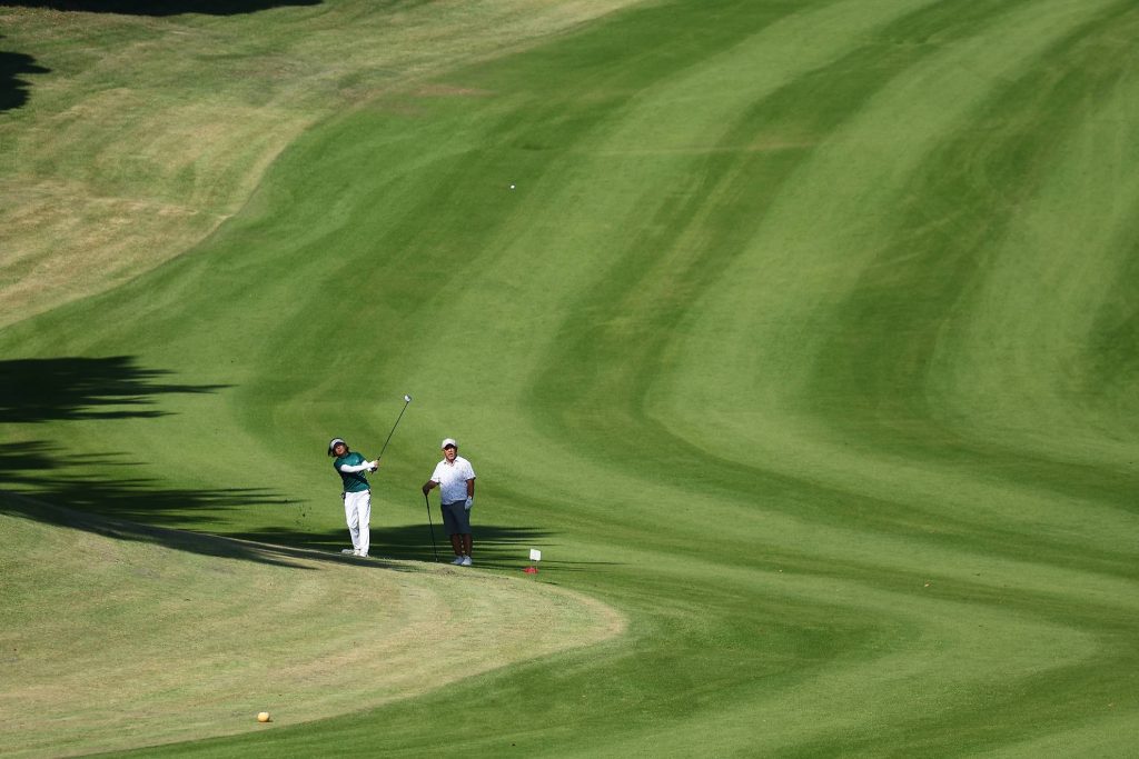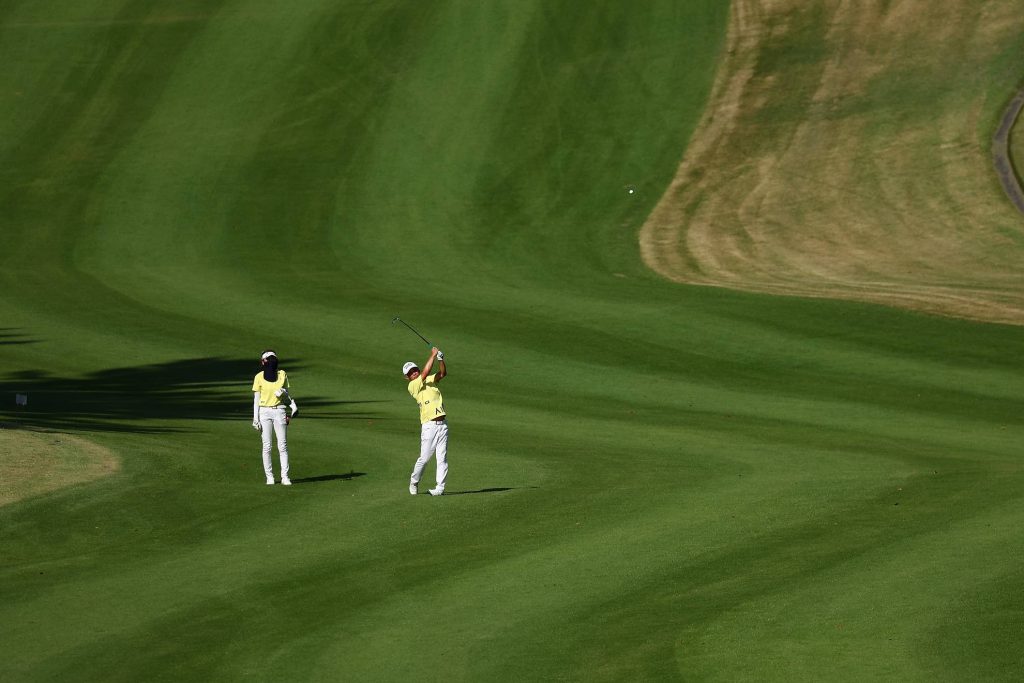 グリーン上を想像しながらの打ち上げ。最終日もピンポジションが難しいため、いつも以上にショットの精度が求められます。