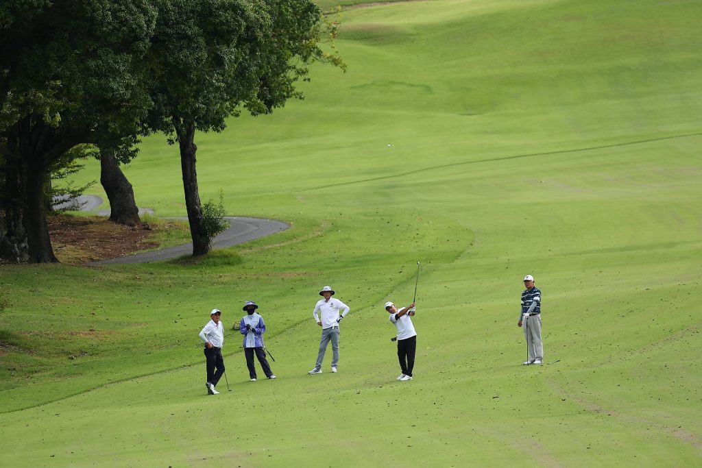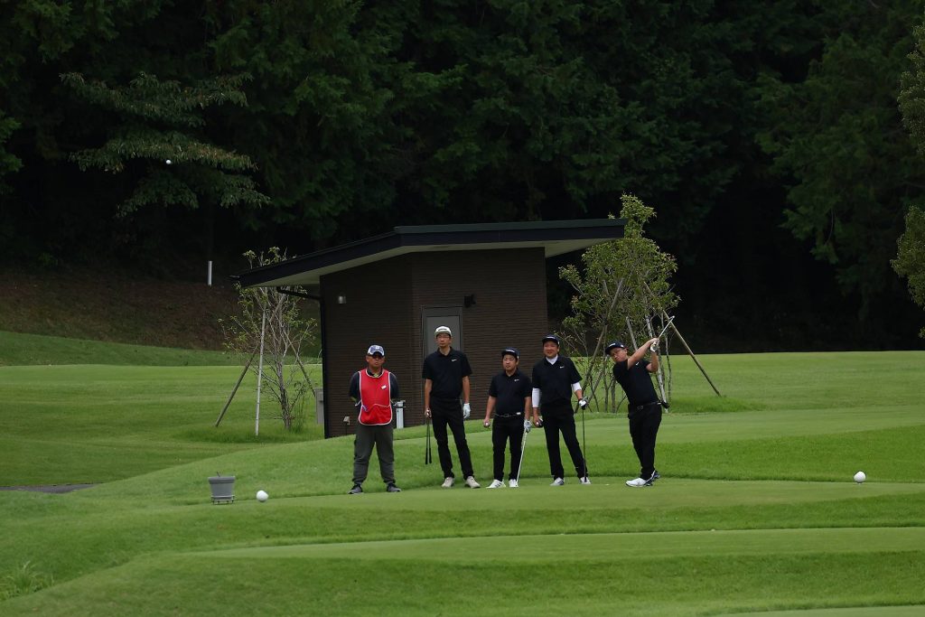 INコースからスタートするのはエンジョイチームの部。磨いてきた腕で402ヤードのパー4を攻めます。