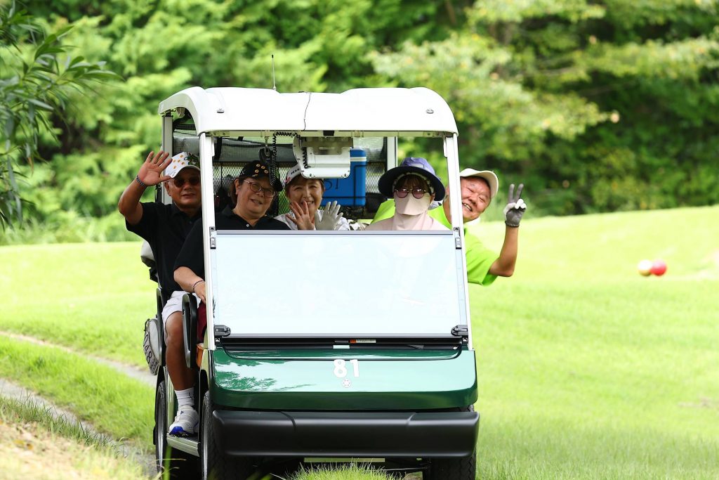 ナイスショットのあとはカートで移動。運転はキャディさんにおまかせなのでペア同士のコミュニケーションを楽しんでください。