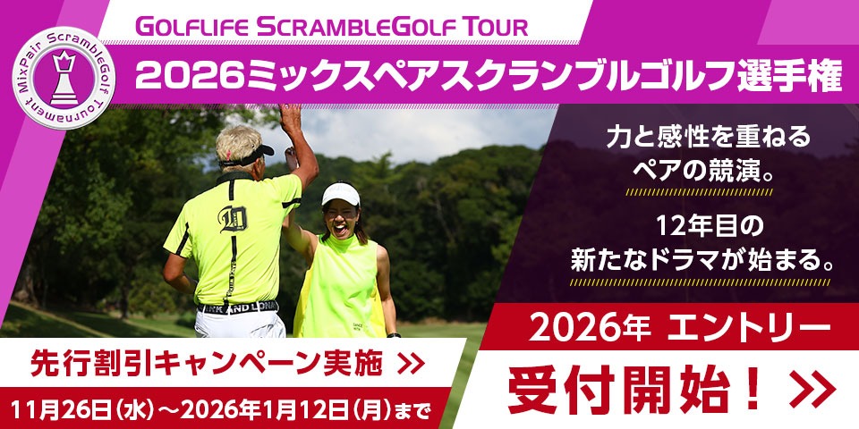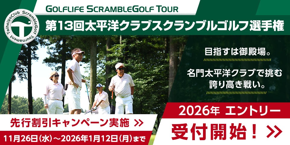 感性と呼吸を重ねる「2026ミックスペアスクランブルゴルフ選手権」、信頼で挑む「2026いい夫婦ペアスクランブルゴルフ選手権」、そして名門を目指す「第13回太平洋クラブスクランブルゴルフ選手権」が、特別料金でエントリー可能です。