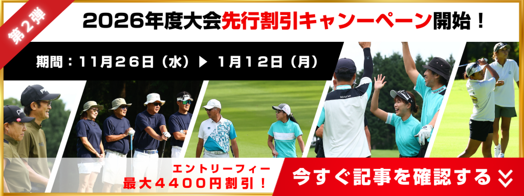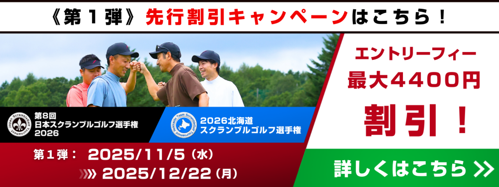 スクランブルゴルフツアー2026年度大会のエントリー開始に合わせ、「先行割引キャンペーン」を期間限定で【2026年度《第1弾》】・【2026年度《第2弾》】と順次開催中です。
