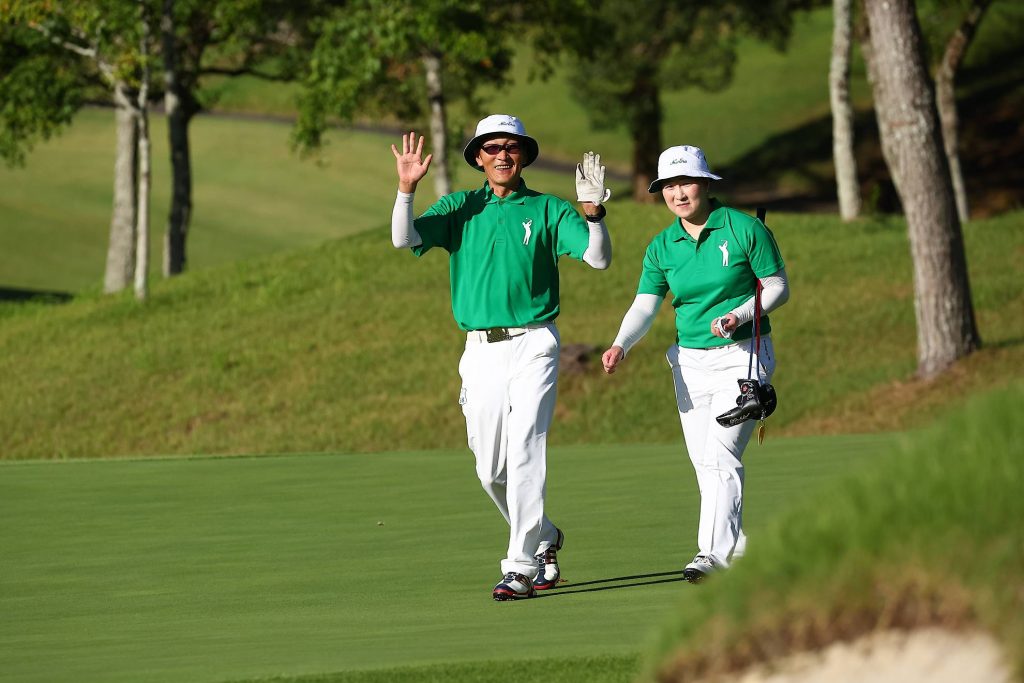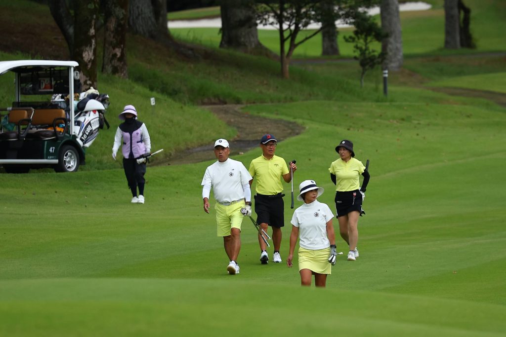 世代の近いゴルファー同士で戦えると好評のシニアダブルス戦には69ペアが出場。
