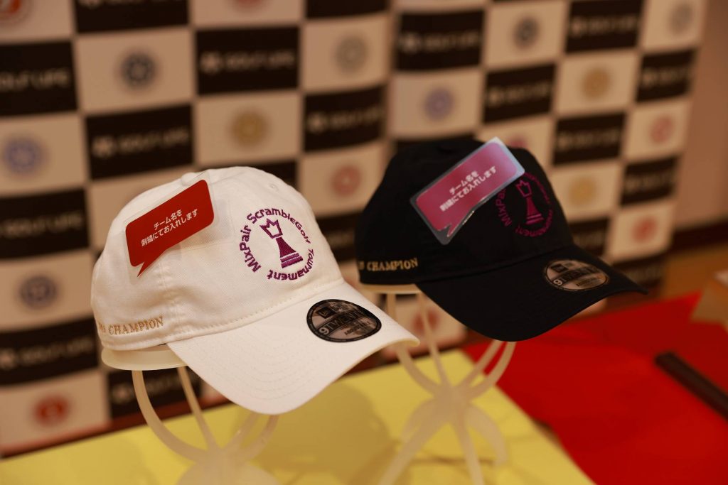 優勝ペアに贈呈されるチャンピオンキャップ。これにチーム名が入れば世界に2つだけのレアアイテムになります。