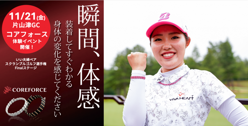 「2025いい夫婦ペアスクランブルゴルフ選手権 Finalステージ」 の会場で、いま話題の体感アクセサリー 「コアフォース(COREFORCE)」 の体験会&販売会を実施します。