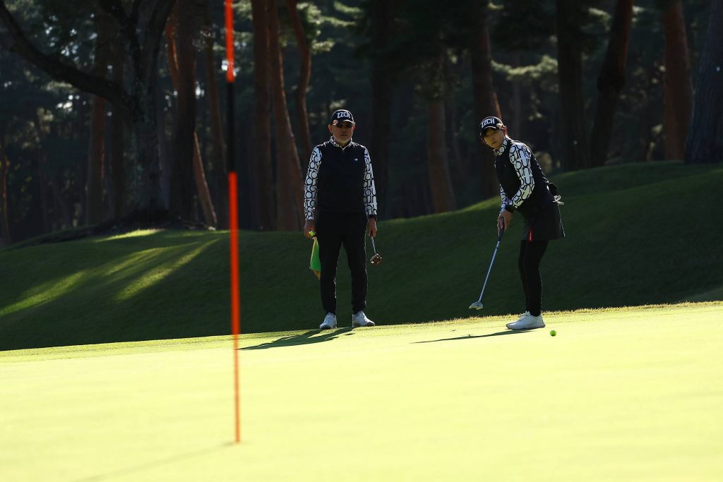 クラブハウス前のパッティンググリーンでは選手のみなさんが最終調整を行っていました。難敵のグリーンを攻略するためはここでの入念なチェックが欠かせません。