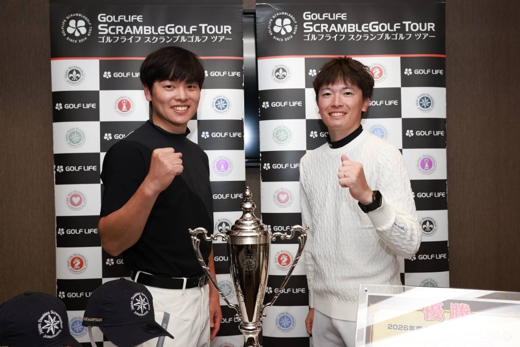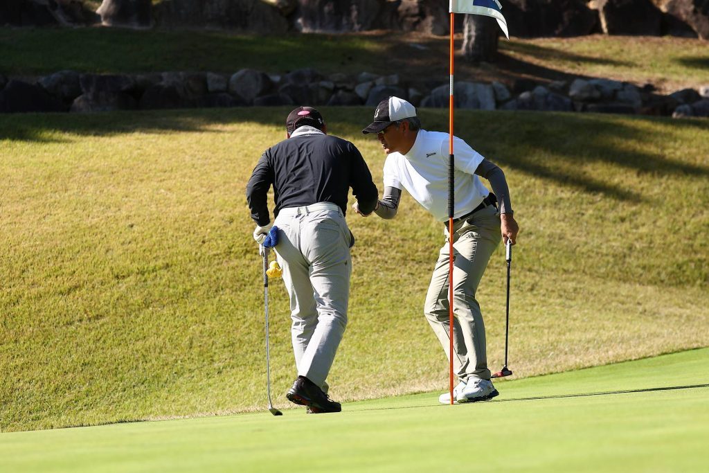 新チャンピオンとなった「考えるな、打て」の2人。鬼門の17番でバーディー、さらにチップインイーグルも加えて勝利を手にしました。おめでとうございます!