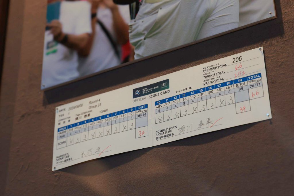 今年優勝した蟬川泰果プロのスコアカードが展示されていました。最終日は66(PAR71)の5アンダー。流石プロというスコアですが、チームプレーで上位を狙うにはちょうどいい目安なのかもしれません。