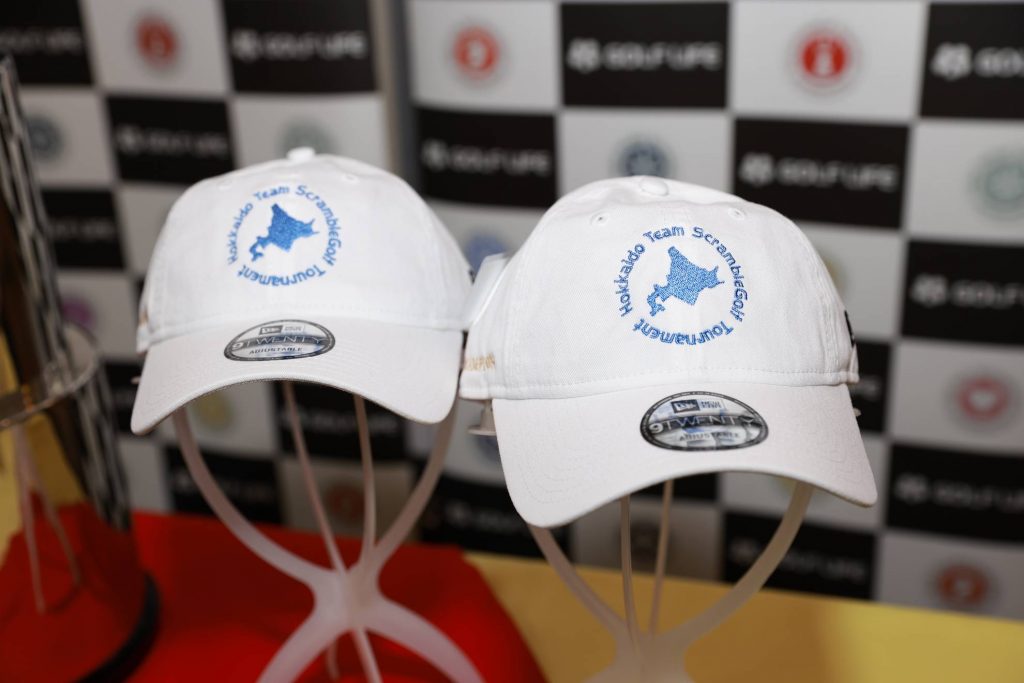 優勝チームに贈られるチャンピオンキャップ。チーム名入りで4人分。北海道のロゴがかっこよく目立ちますね。