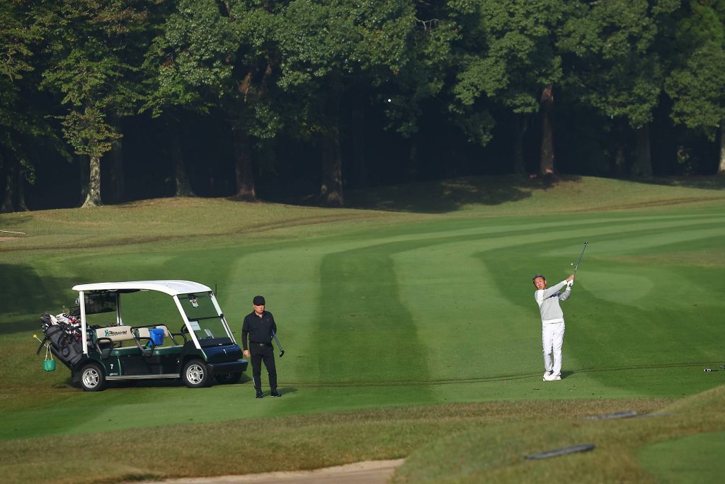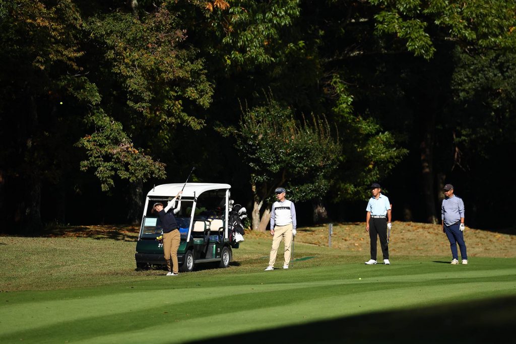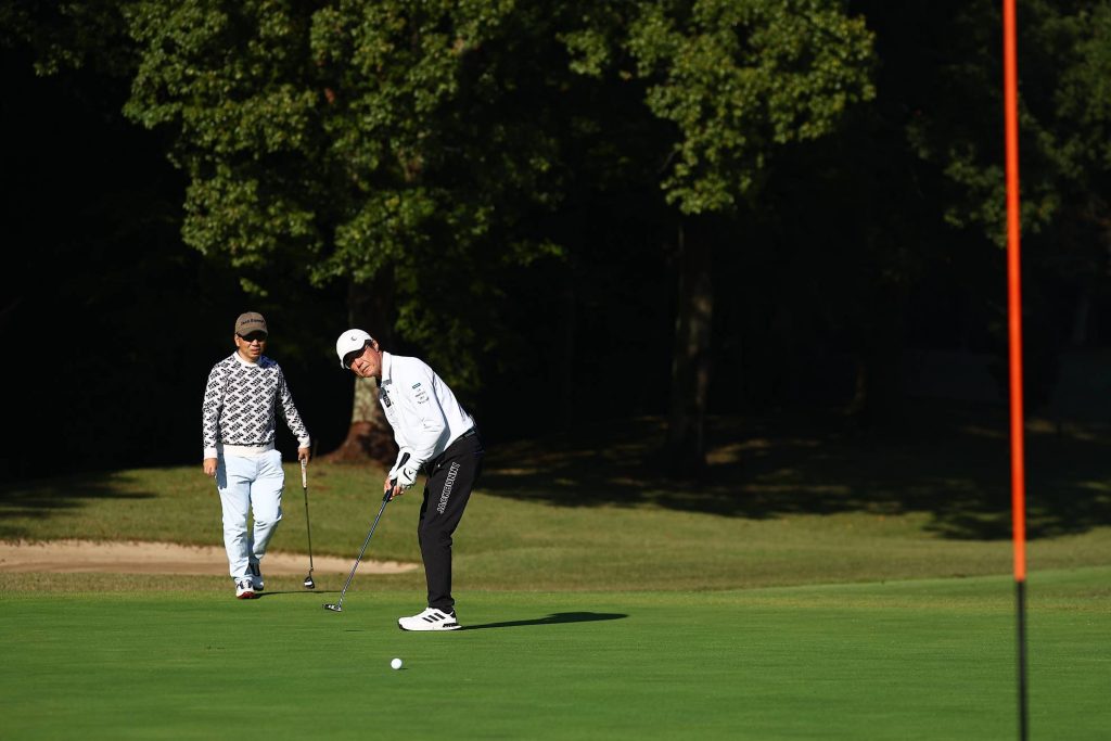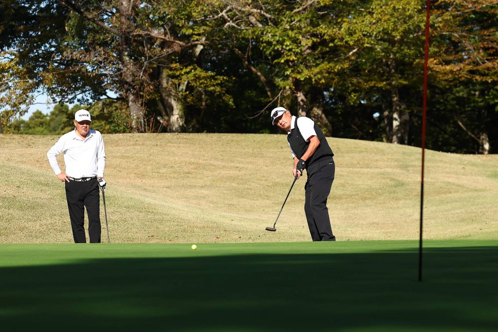 雲ひとつない青空が広がった平川カントリークラブ。パッティンググリーンには今日のコンディションを確かめるべくパターを握る選手の姿が。