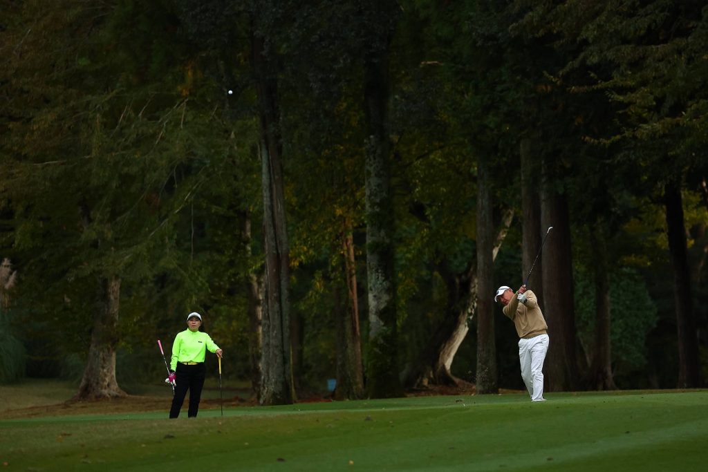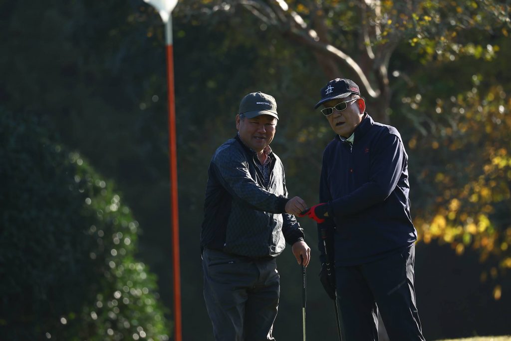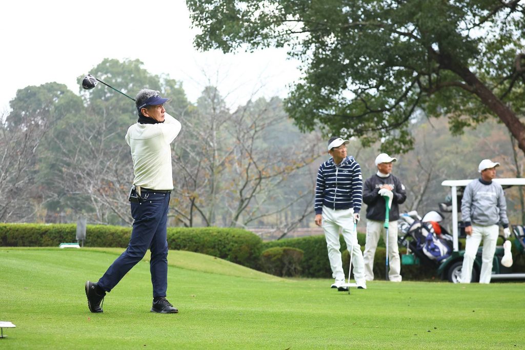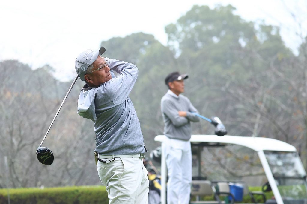シニアダブルスの参加条件は55歳以上(女性は50歳以上)です。ゴルフキャリアはもちろん競技経験も豊富なペアが多いという印象。いつものルーティンを崩すことなく視線をコースに向けていました。