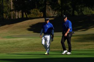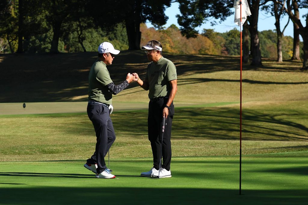 ゴルフ日和のまま試合は後半戦へ。上位争いはおそらく肉薄のはず。各ペアがバックナインの勝負に挑みます。