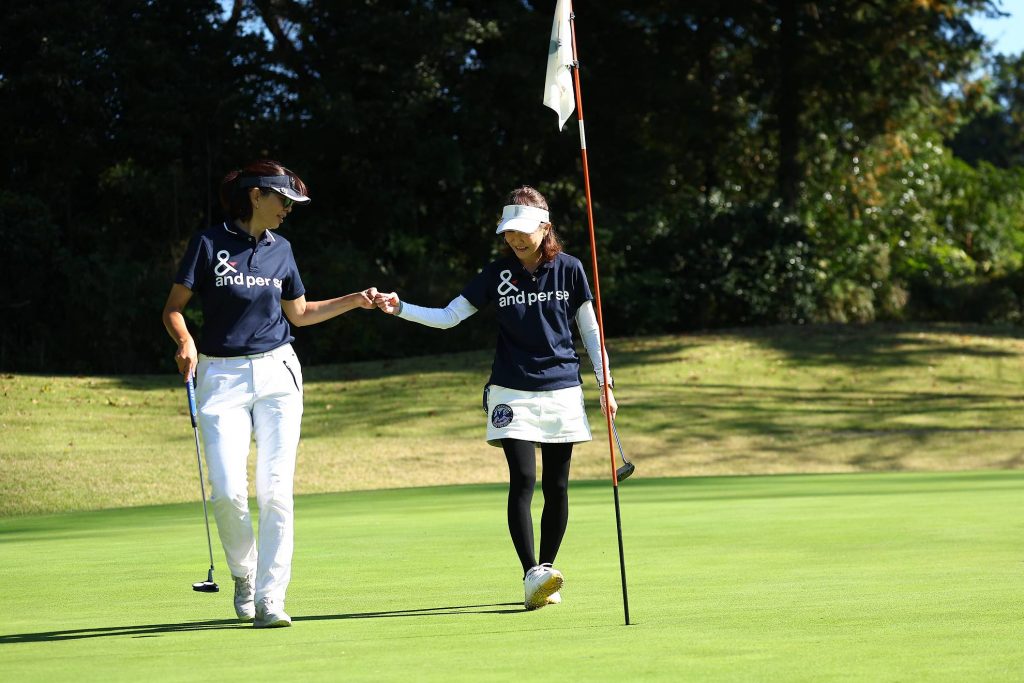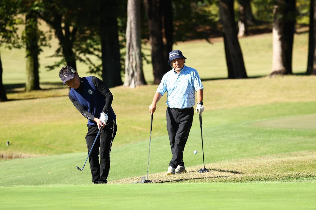 最終組で回るのは唯一の女性ペア。難なくバーディーパットを決めて絶好調のようですね。