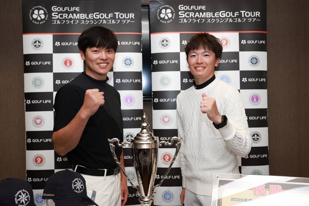 2025年11月4日(火)開催「第5回全日本ダブルススクランブルゴルフ選手権2025 全国決勝」にて見事優勝した「考えるな、打て」島田青葉選手、新村廉選手のインタビュー記事です。優勝スコアは2位に2打差をつける10アンダー。実力を発揮して新チャンピオンの座を勝ち取りました。