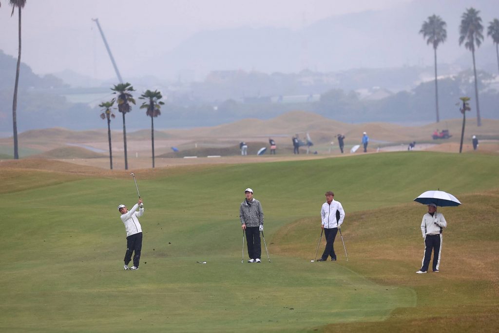 11月の雨なのでみなさん寒そうにしていますね。ティショットの前に素振りなどでしっかり体を温めてくださいね。