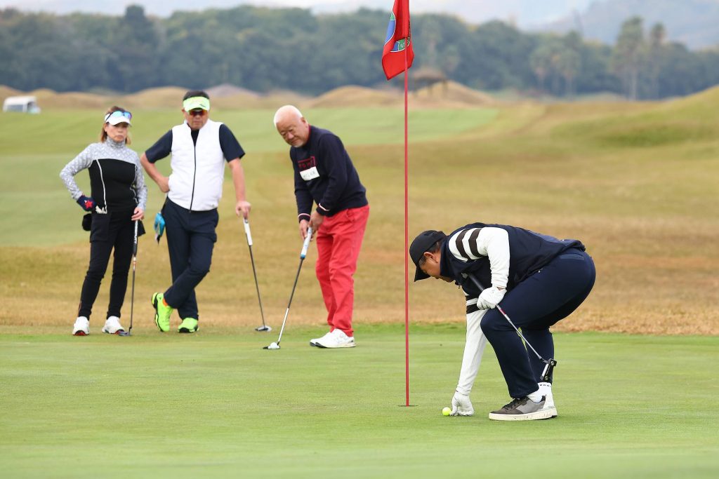 チームプレーでナイスイン!誰が決めてもチームのポイントになるのがスクランブルゴルフ。みんなで喜びを分かち合いましょう。
