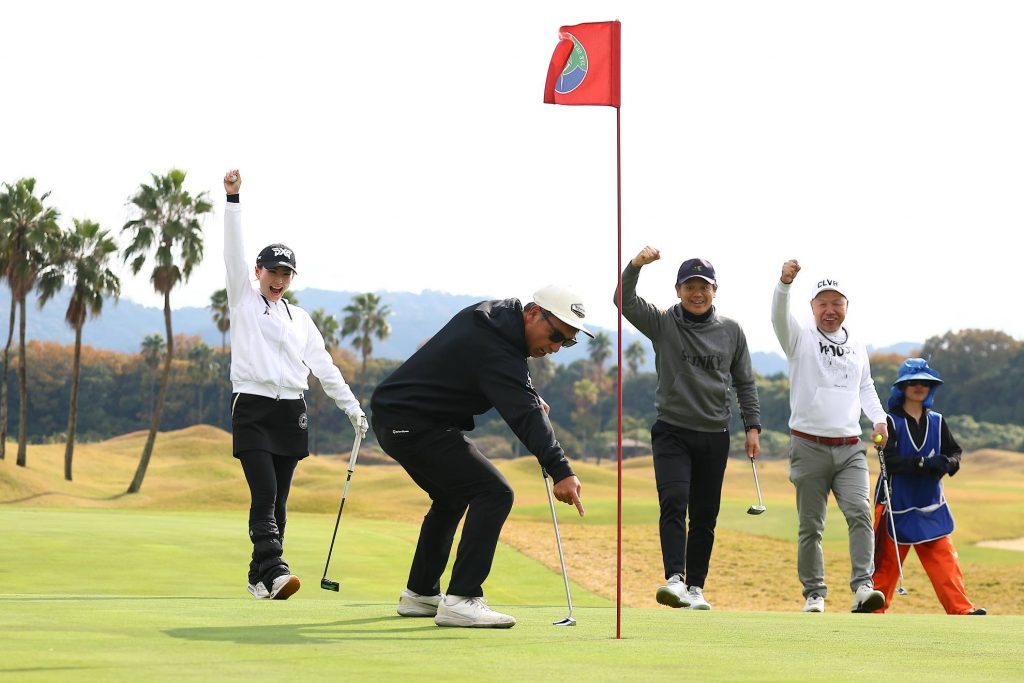 そんな中、優勝を果たしたのが「ここママ」のレディスチームです。2イーグル、11バーディーで15アンダー。この日は監督(?)の三枝こころさんと一緒に勝利をつかみとりました。おめでとうございます。