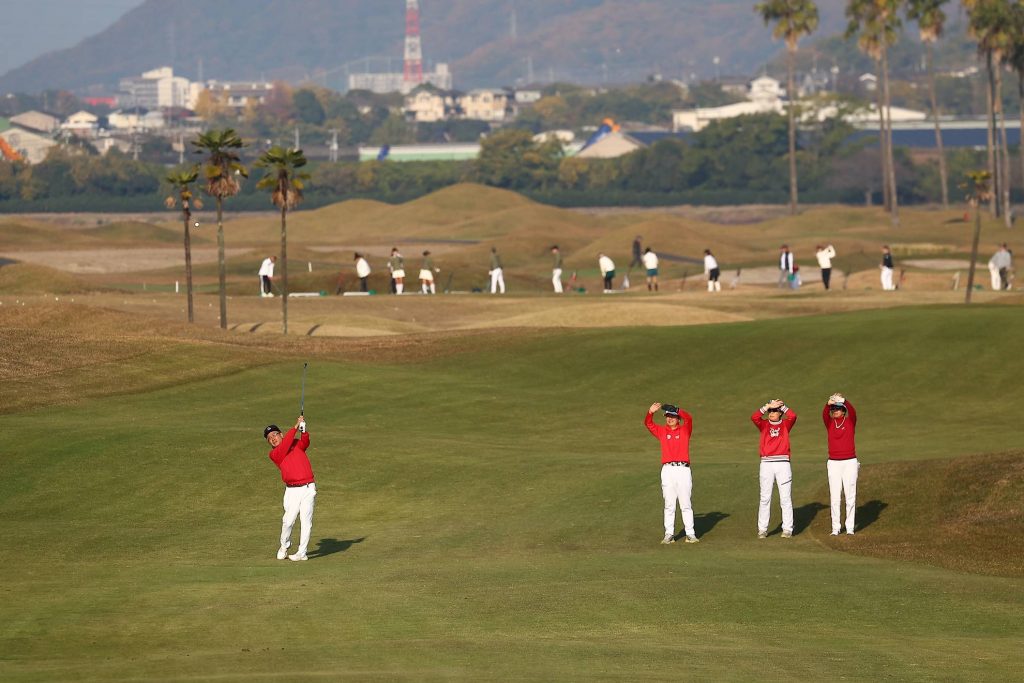前日の全日本チームと同じ7時半にティオフ。雨の心配はなく終日晴れ予報です。朝日に向かってナイスショットを決めましょう。