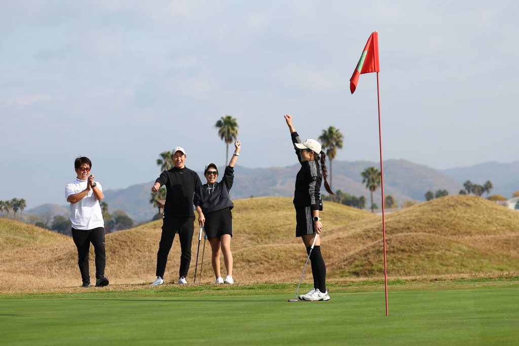 そしてグリーンの外から劇的イーグルを決めたのはご夫婦ペア同士の合体チーム。これで順位がどう変わるのか、結果はスコアボードにてご確認ください。