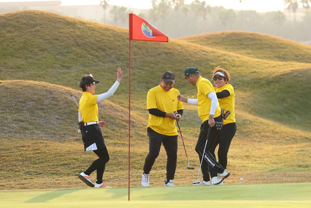 ロングホールということでバーディーは必須。最後の最後にスコアを伸ばすチームが続出していました。