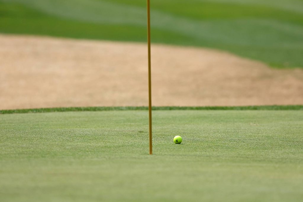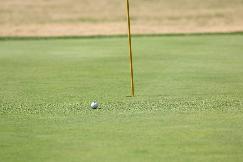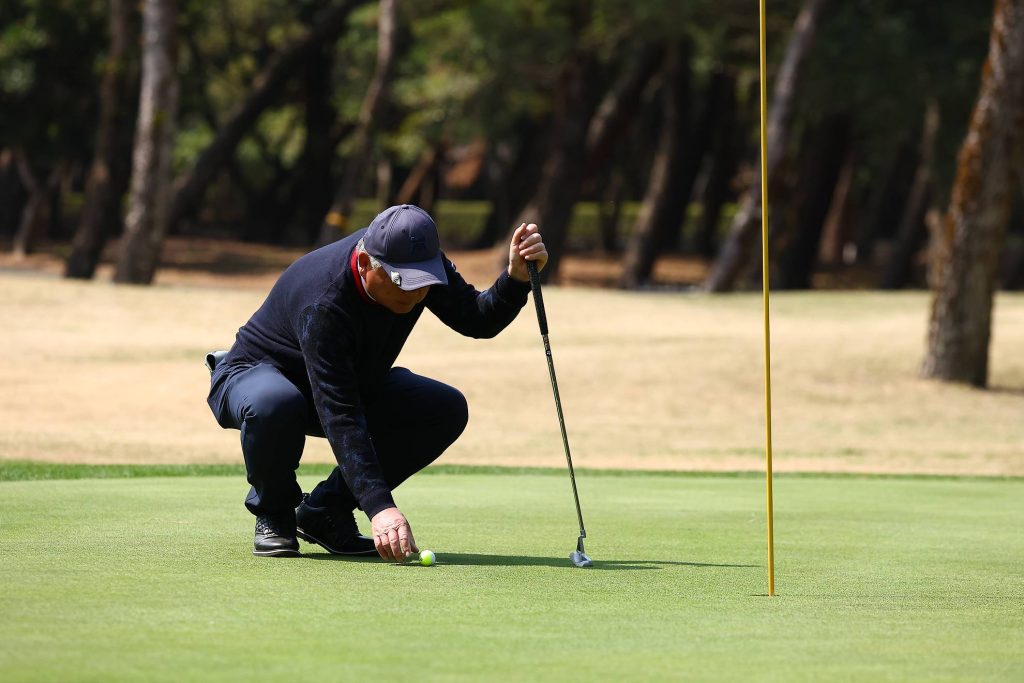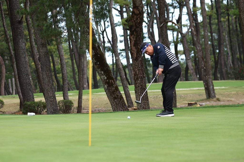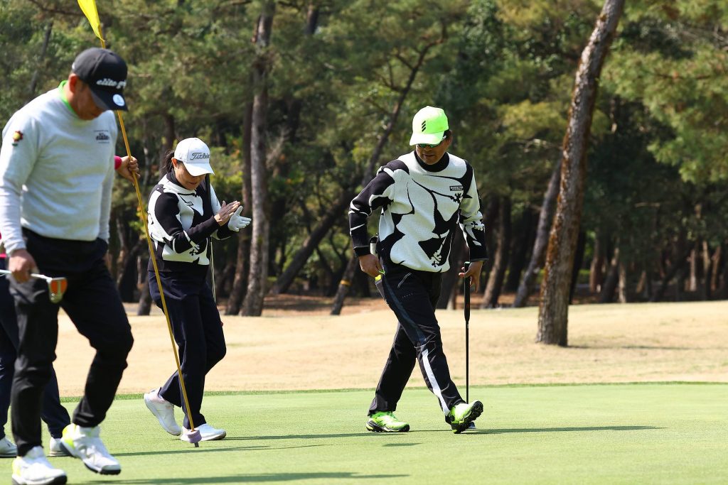 続いてパター。セルフなのでクラブの準備もチームプレーの範囲内です。