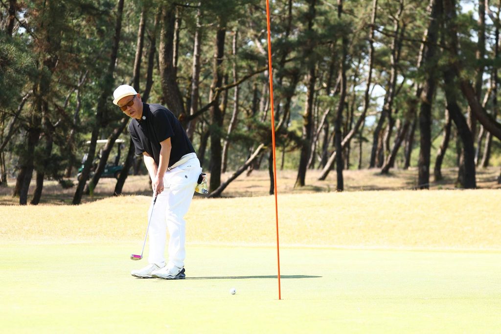 手に持つクラブはパターのみ。