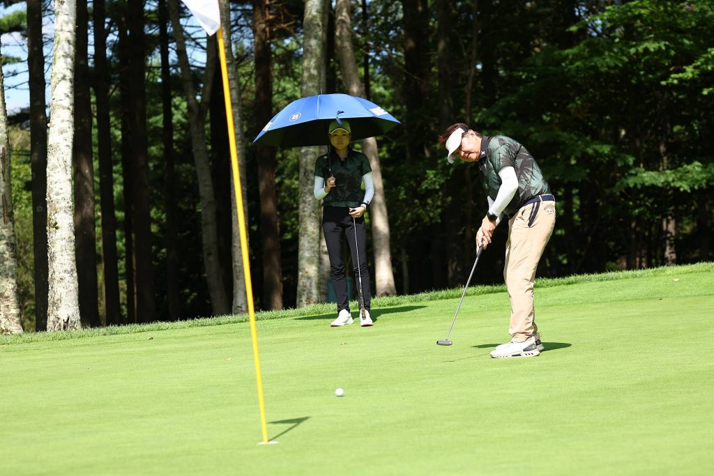 インターバルではパッティング練習ができます。前半の反省を踏まえて再調整を。