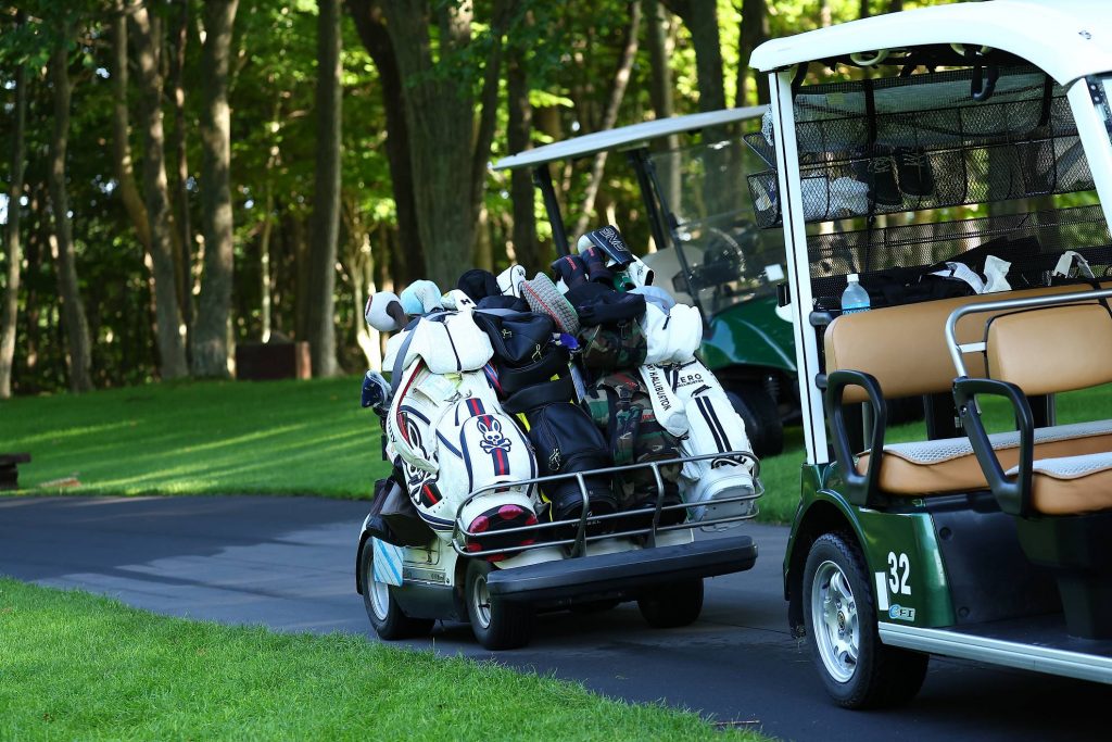 キャディさんは選手用のカートと別で移動するスタイル。