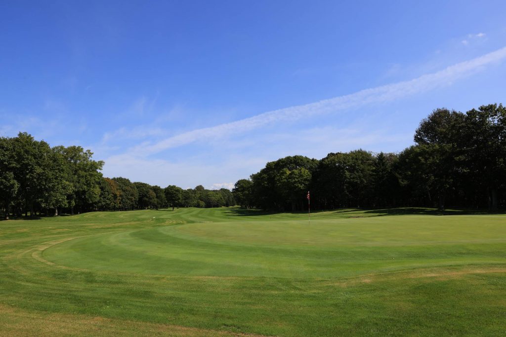 フェアウェイからグリーンまでほぼフラットな1番ホール。