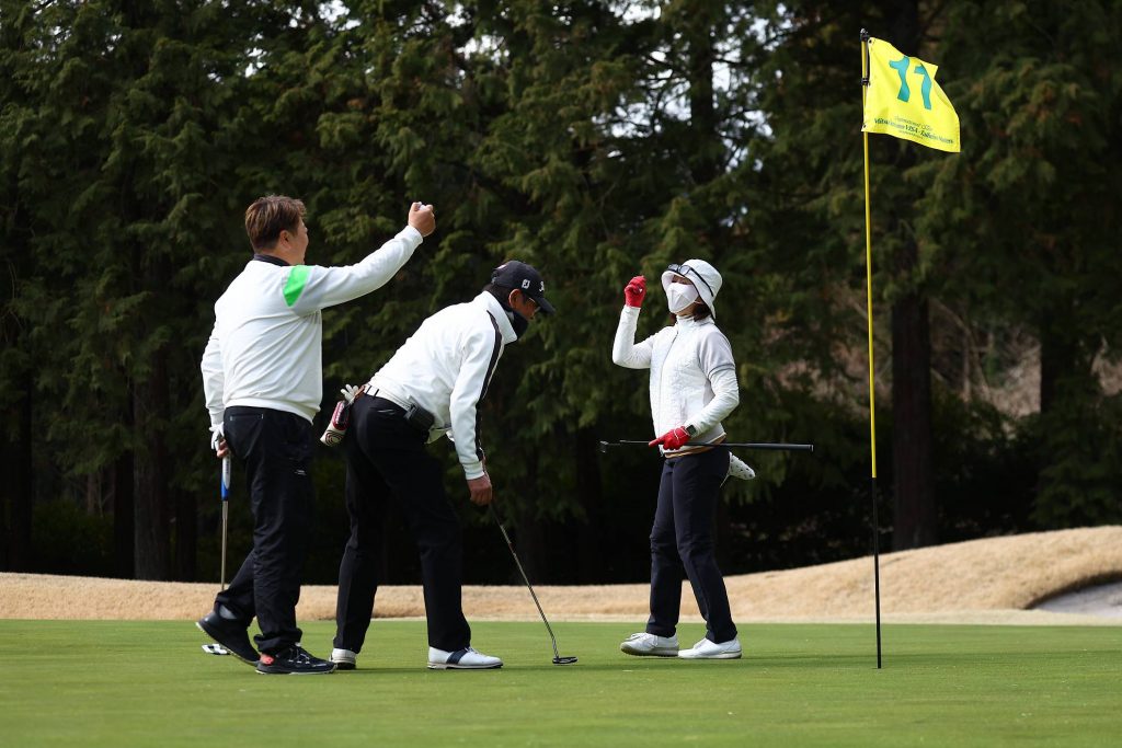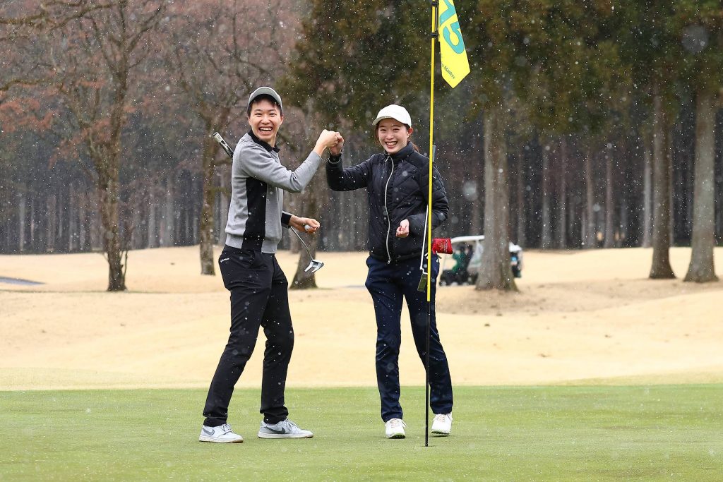 悪天候にも負けないチームプレーが。ナイスバーディー!