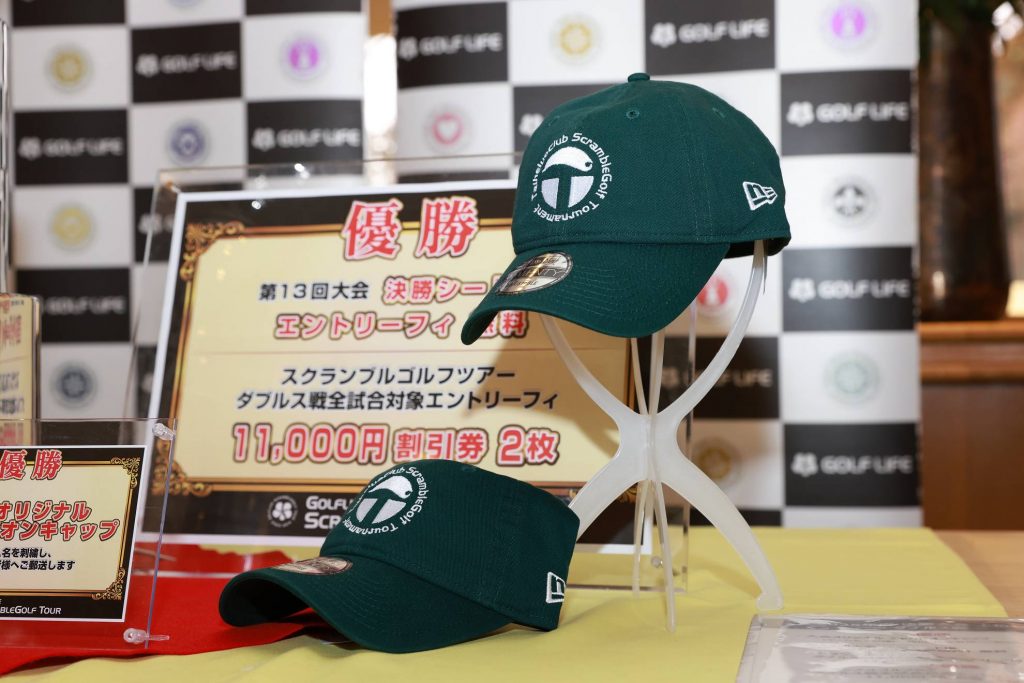 優勝チームに贈呈されるチャンピオンキャップ。チーム戦もダブルス戦も目指すはトップオブトップ。心してコースに挑んでください。