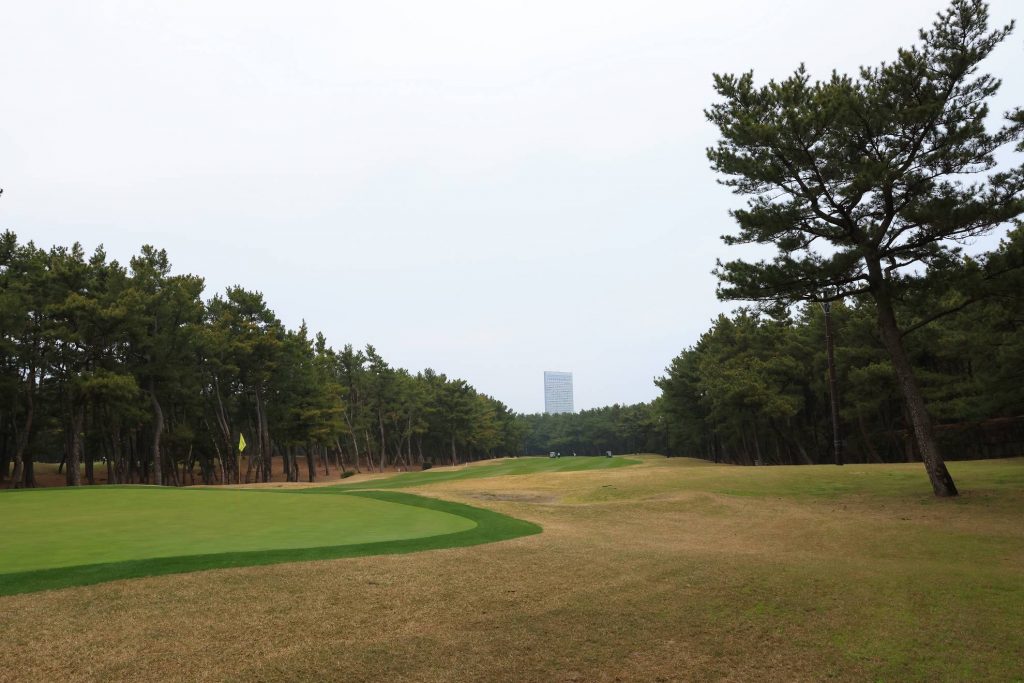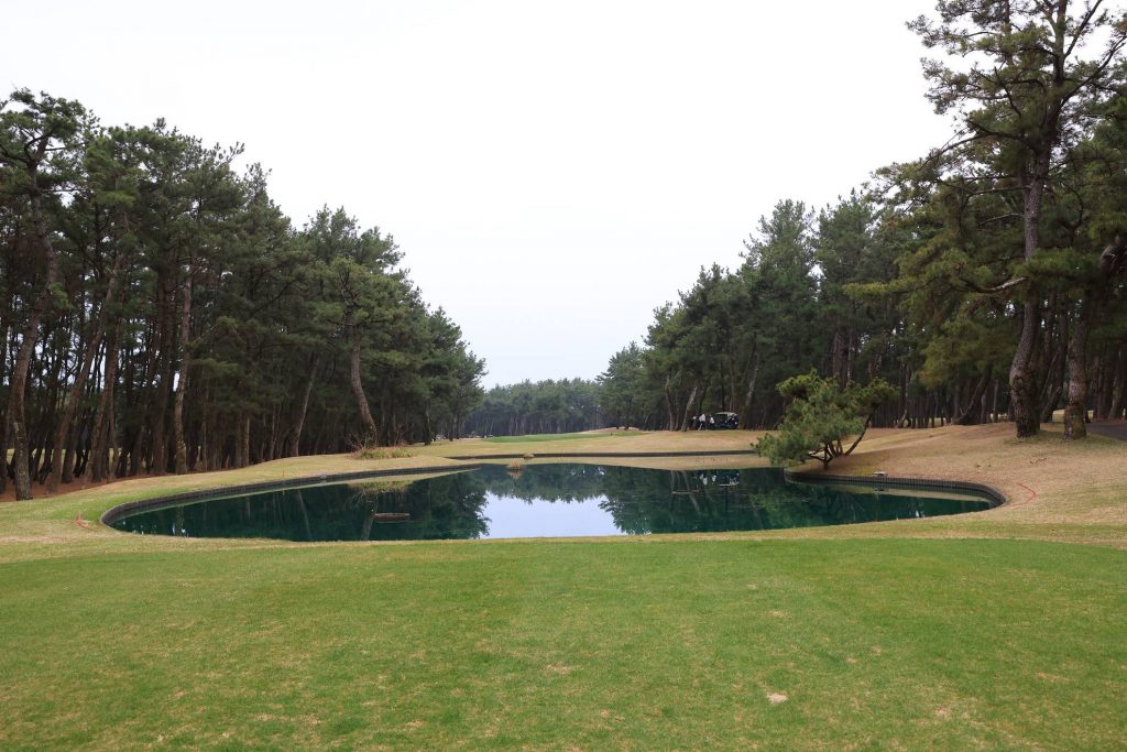 女性選手は前方のピンクティから。総距離4,747ヤードと短めですが、難しいコースなので気を抜くことはできません。