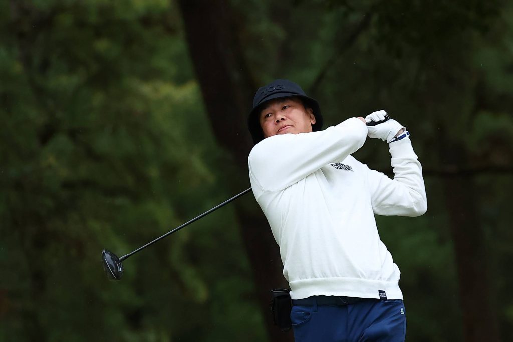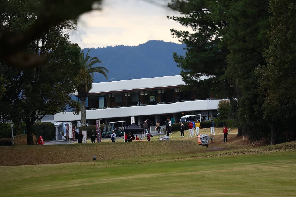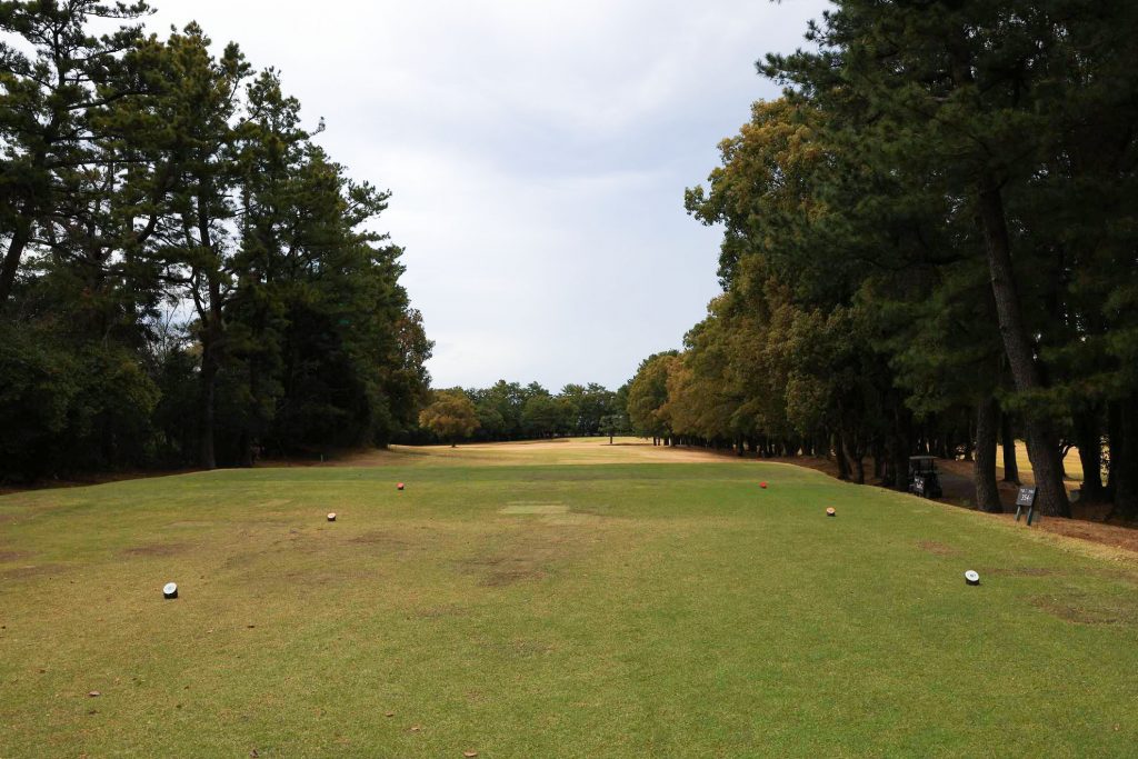 雲が低く感じられるスタートホール。朝からしばらくは雨予報が出ています。その後は回復する見込みなので、まだ見ぬ青空をイメージしながらコースに飛び出しましょう。