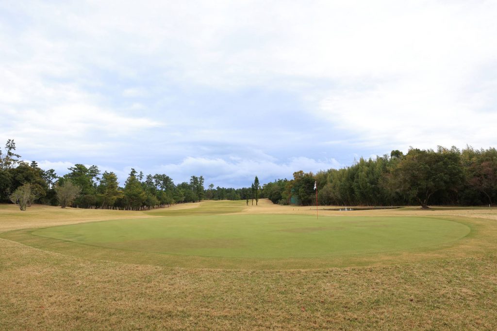 クラブハウス前のパッティンググリーン。ここで調子を見ながらパターの打順を決めるのもいいと思います。日によってタッチが変わることもありますからね。