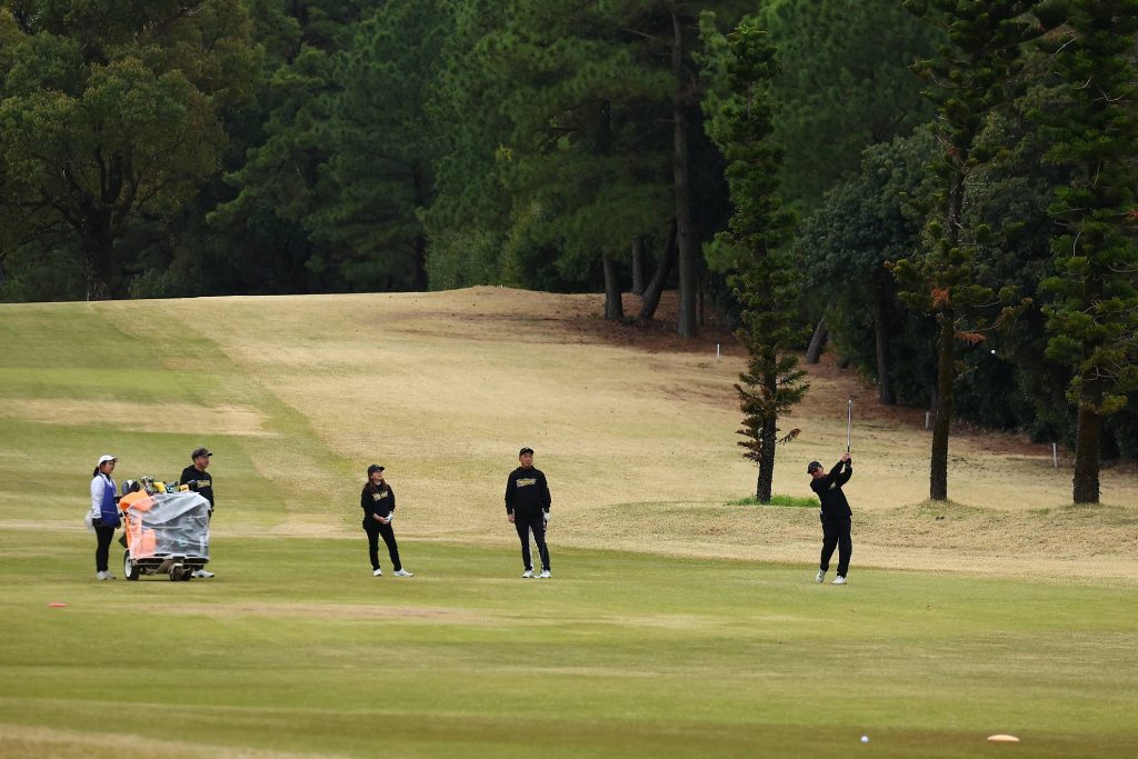 ティーングエリアを離れてプレーの様子を見ていきます。試合はまだはじまったばかり。ここから18ホールの長い戦いが続きます。