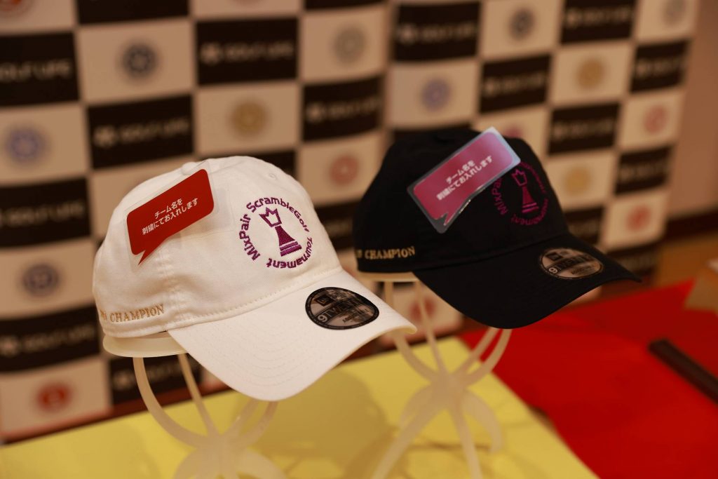 優勝ペアに贈呈されるチャンピオンキャップ。チーム名が入るので唯一無二の戦利品です。