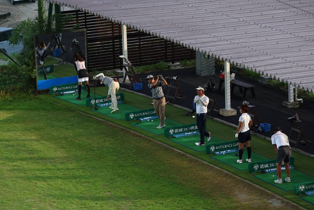 駐車場の裏手にある練習場では最終調整に余念のない選手の姿が。