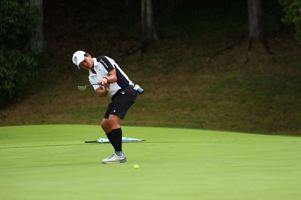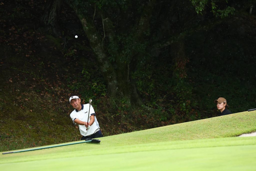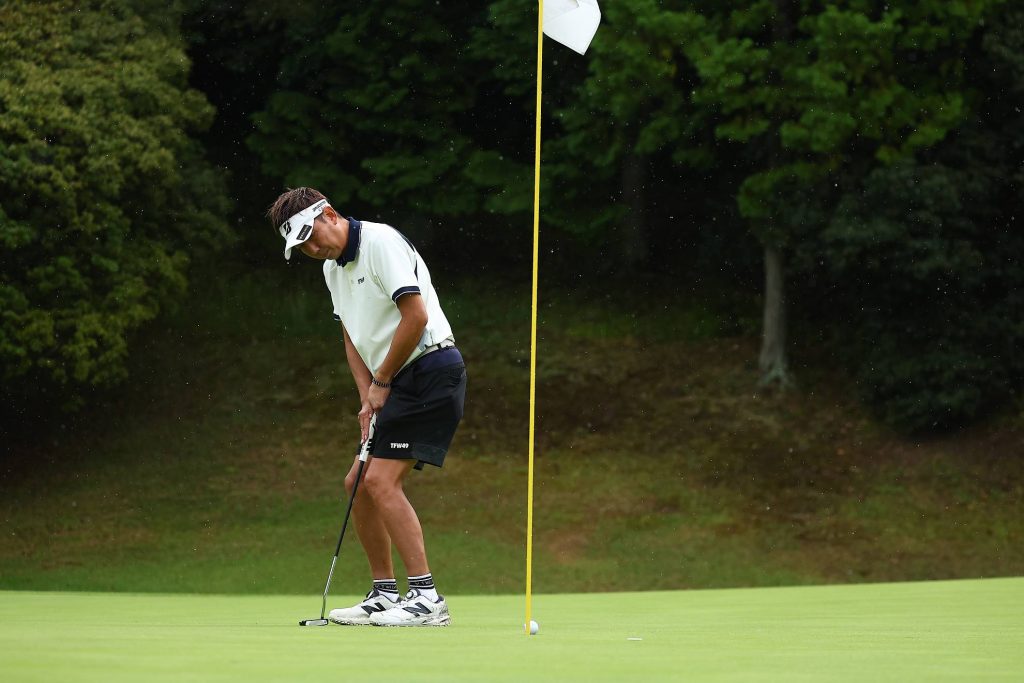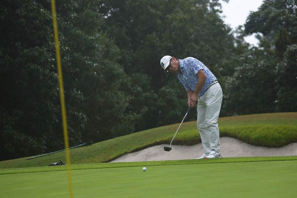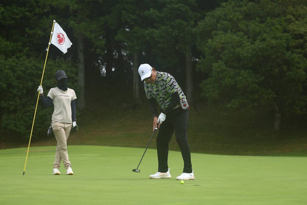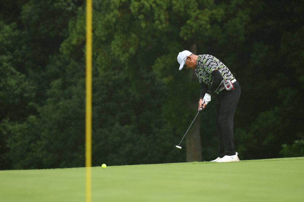 まだ小雨がパラついていますが、気にせずカップを狙いましょう。