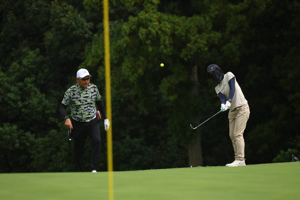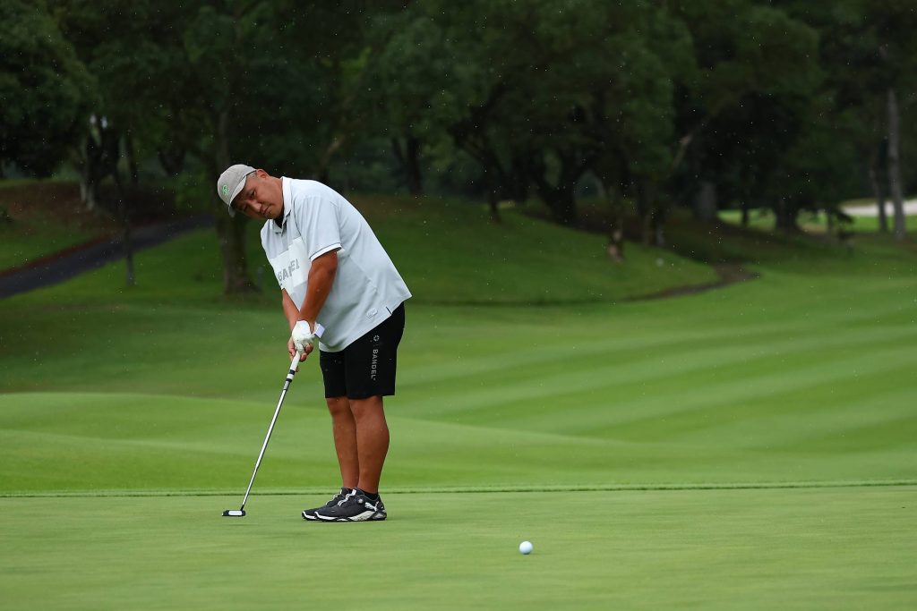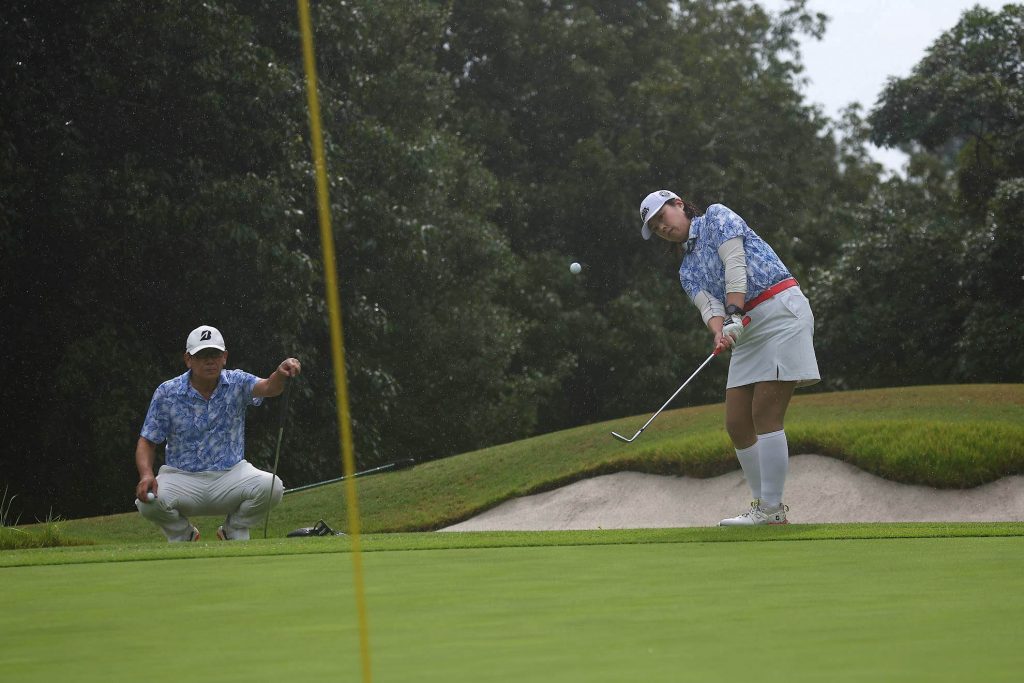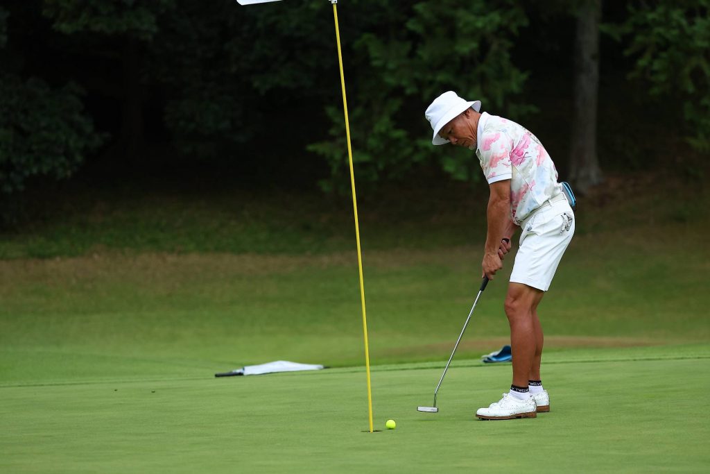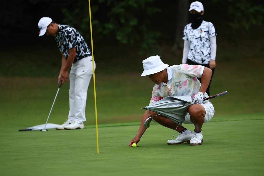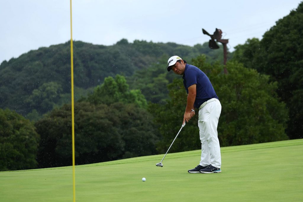 まだ小雨がパラついていますが、気にせずカップを狙いましょう。