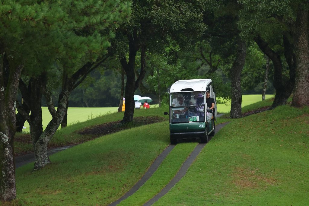 カート移動はキャディさんの運転で。安心安全のセーフティードライブ。