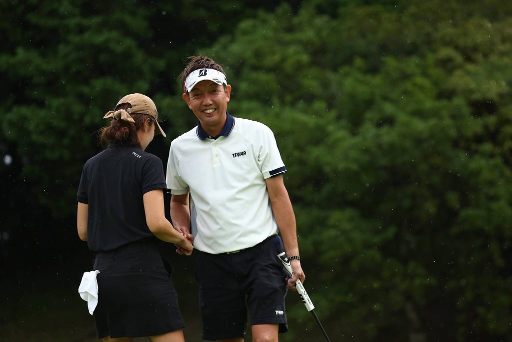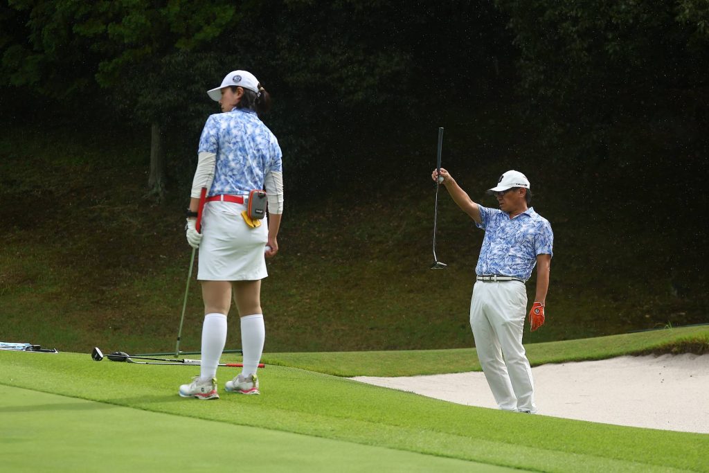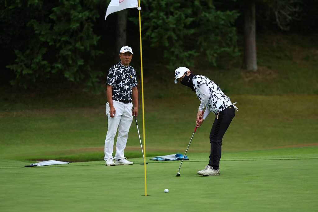 早めのバーディーでミックスペアの頂点に一歩近づきたいところ。