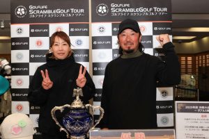 2023年3月22日(水)開催「第2回日本プロアマダブルススクランブルゴルフ選手権 全国決勝」に出場した「バースデイズ」原田香里プロ、福井謙太郎選手のインタビュー記事です。第1回大会に続く2度目の全国決勝。あいにくの雨天でしたがチームプレーを十分に楽しめたようです。 パートナーはハンデ1.7の上級者、楽しい以外…